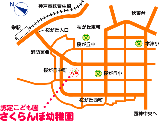 〒651-2226 神戸市西区桜が丘中町2丁目8番2号 TEL 078-994-5225 FAX 078-994-4332 幼稚園へのアクセス(地図)